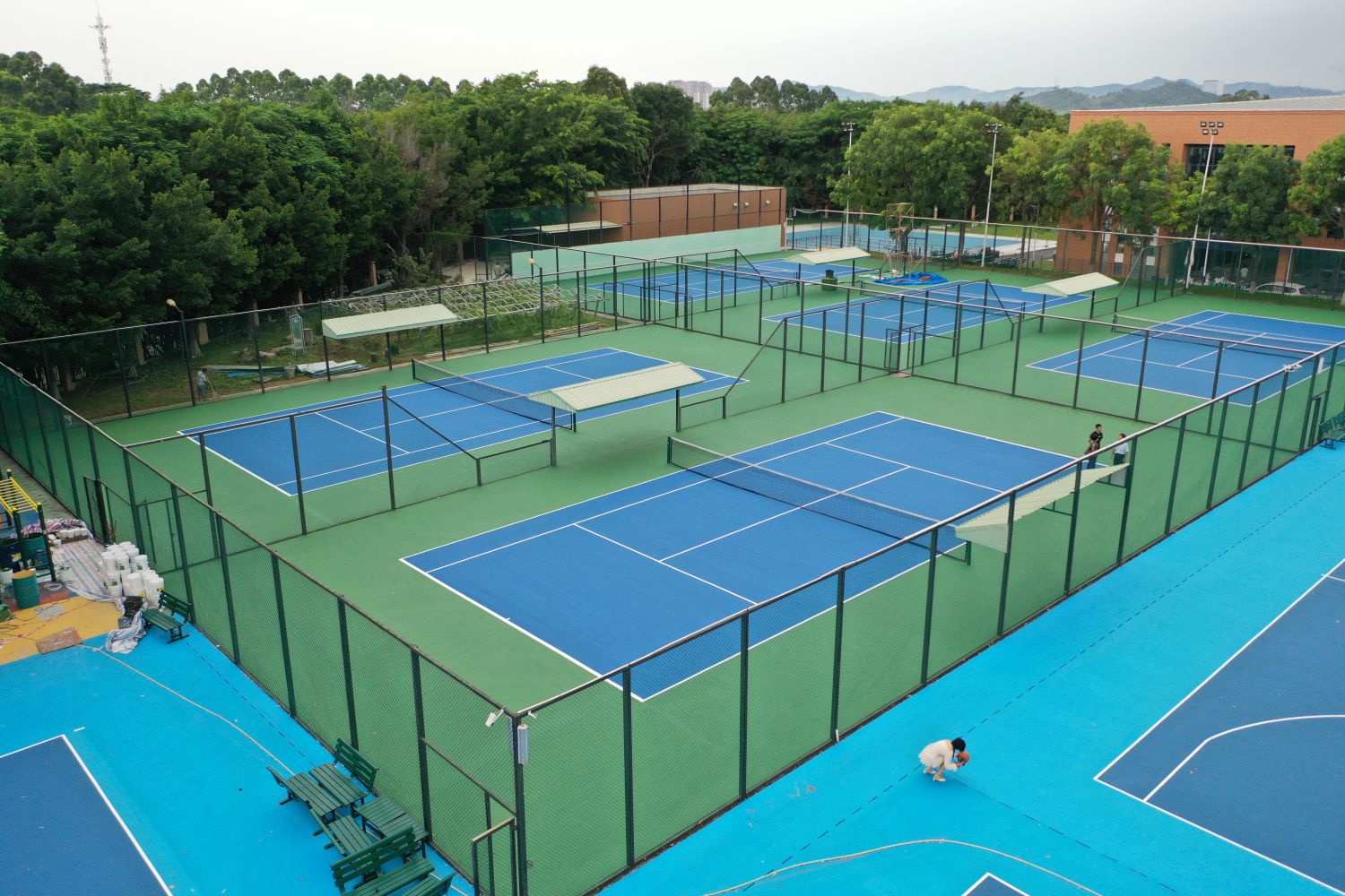 本项目位于深圳市龙岗区信息职业技术学院内,主要改造内容对学校内4片标准网球场、5片标准羽毛球场、2片标准篮球场面层拆除后重新摊铺,面层采用先进的弹性丙烯酸系统,改造面积约6000平方米。