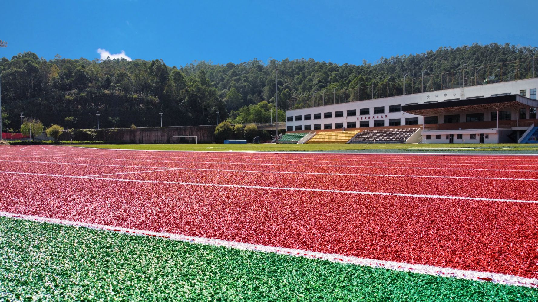 本项目位于万科总部梅沙书院内,包含一条200米标准田径场及一片七人制人造草足球场,占地面积约3500平方米,主要工作内容包括旧面层及基础拆除、沥青基础摊铺以及全塑型跑道面层铺设,旧草皮拆除与新草皮铺设等等。
