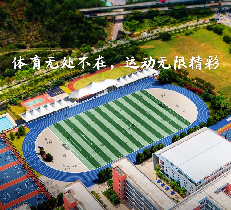 本项目位于深圳市龙岗区建文外国语学校,主要施工内容为1个标准250米田径场、4.5片硅PU标准篮球场、4片硅PU标准羽毛球场、2片硅PU标准排球场、1片标准七人制人造草足球场以及配套的灯光照明设备、体育器材设备等等,占地面积约9900平方米。